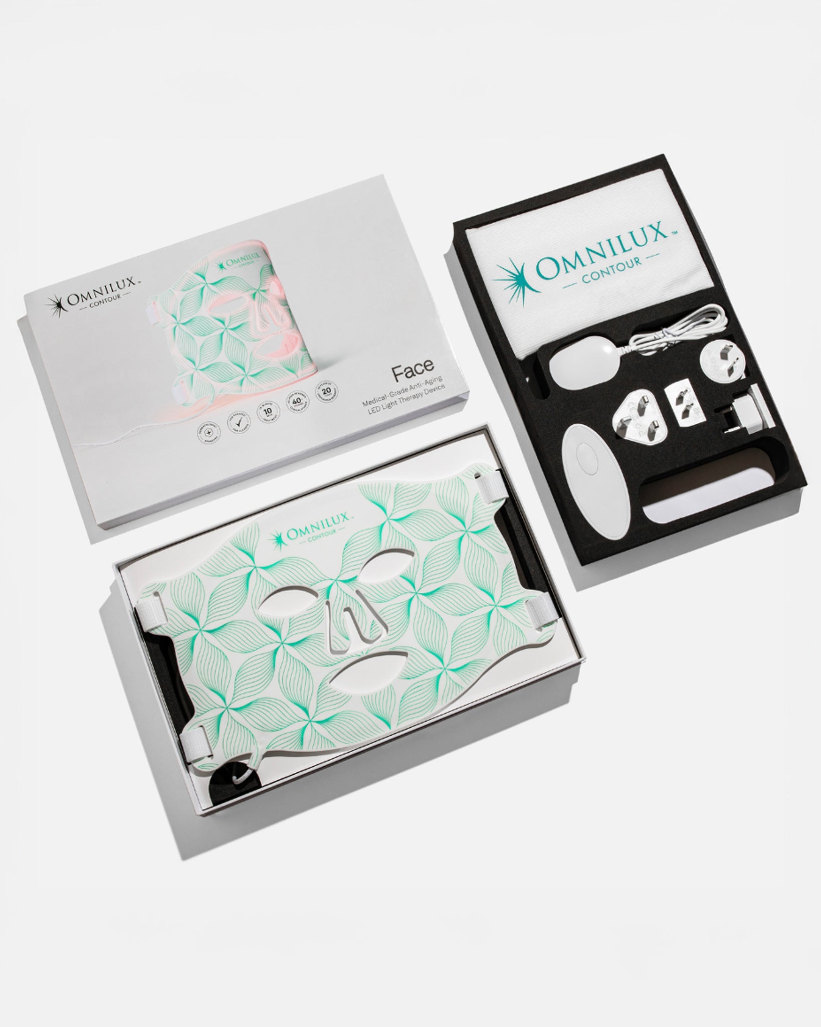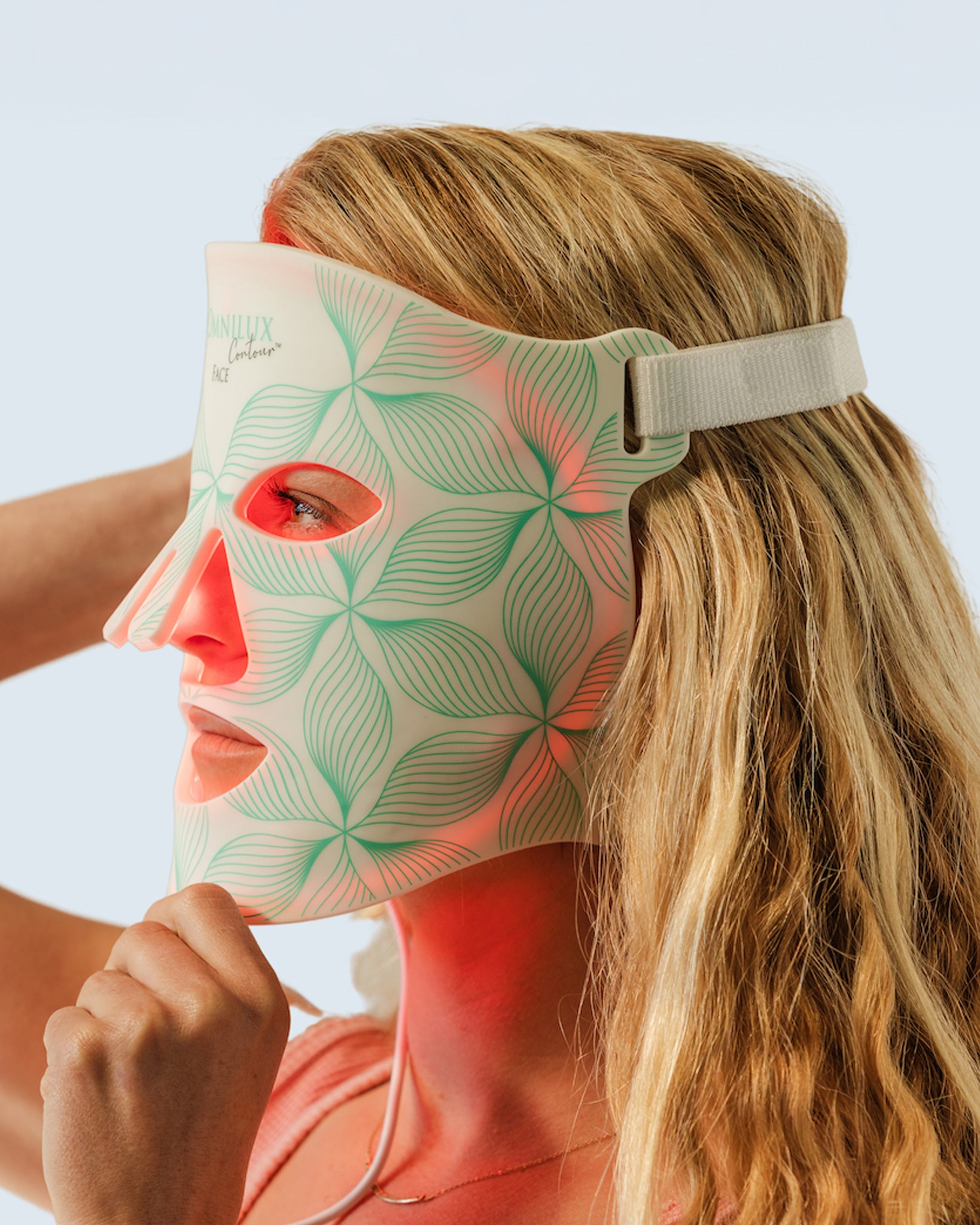 - Next, put on the Omnilux Contour Mask to help all of the active ingredients to penetrate the skin.