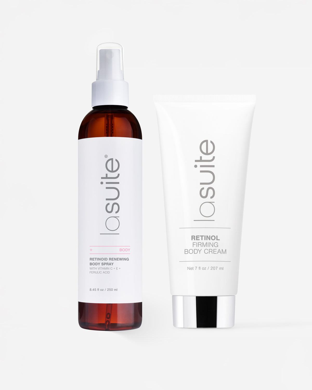 “Vitamin A (aka retinol/retinoid) does the same great things for your body as it does for your face - everything!“ It doesn’t get more effective than this duo for transforming the skin. I use the Spray under Retinol Firming Body Cream every night. My skin has never looked or felt better. “ - Rhea Souhleris Grous, La Suite Founder