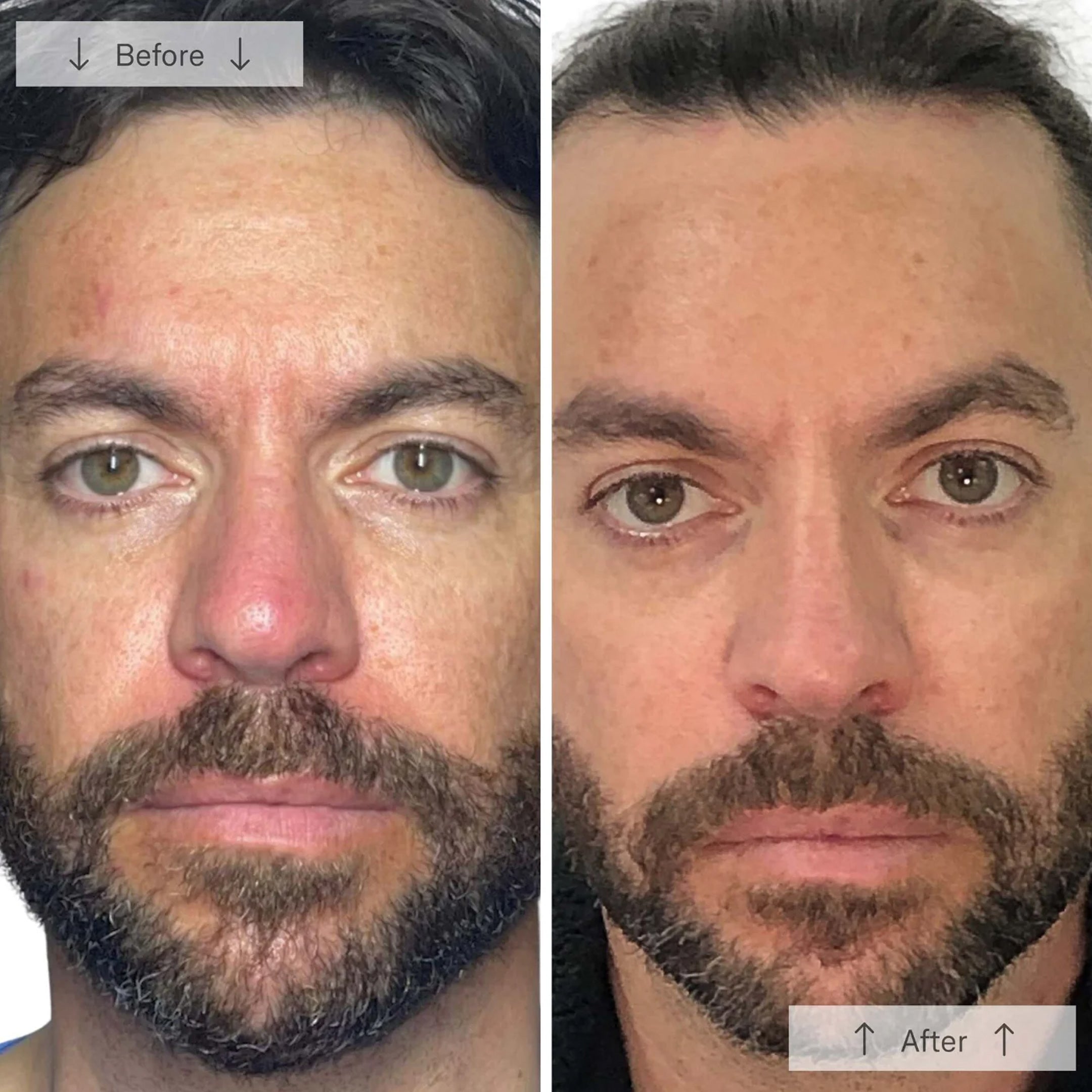 FDA-cleared, dermatologist-recommended red light therapy device with clinically proven results for men's skin rejuvenation.