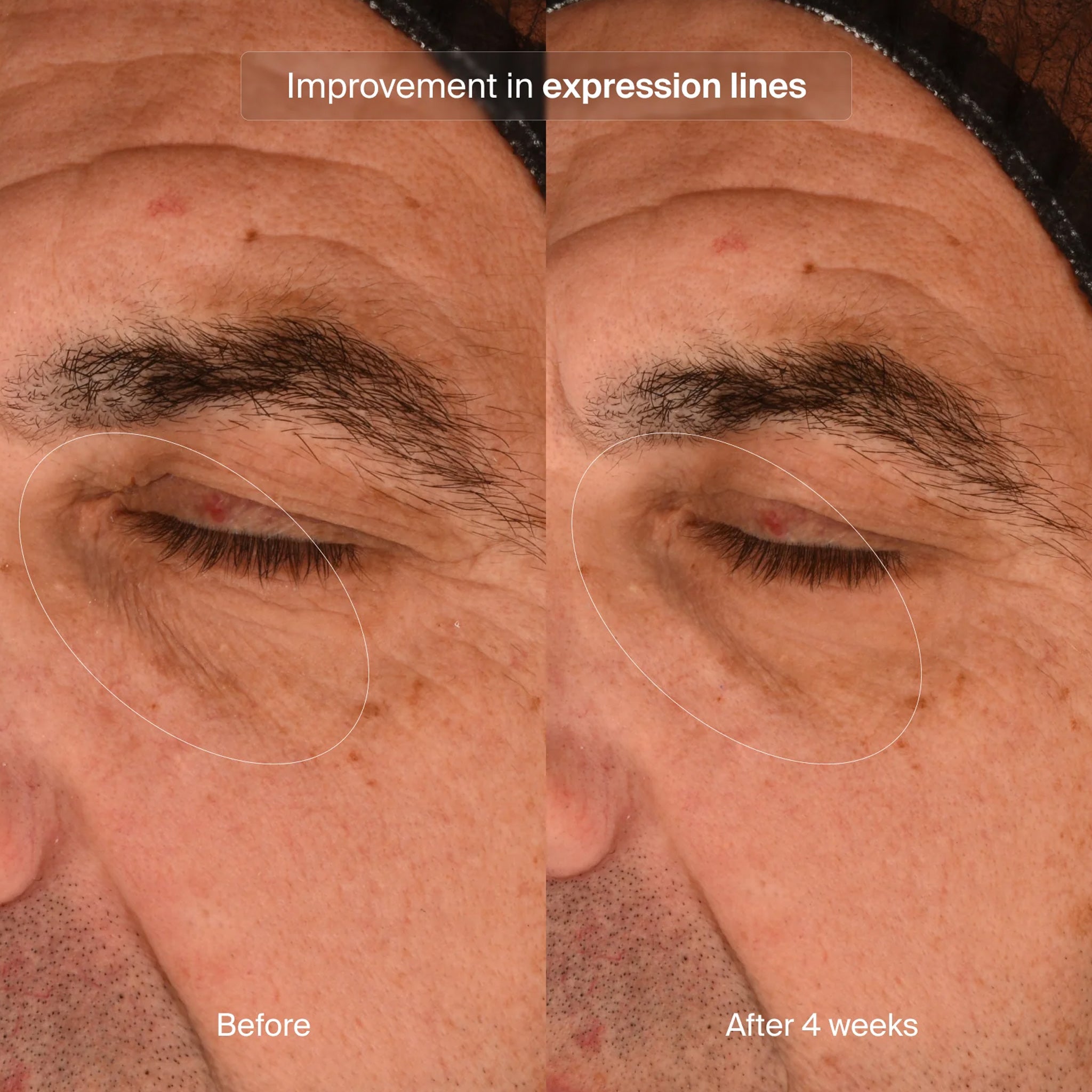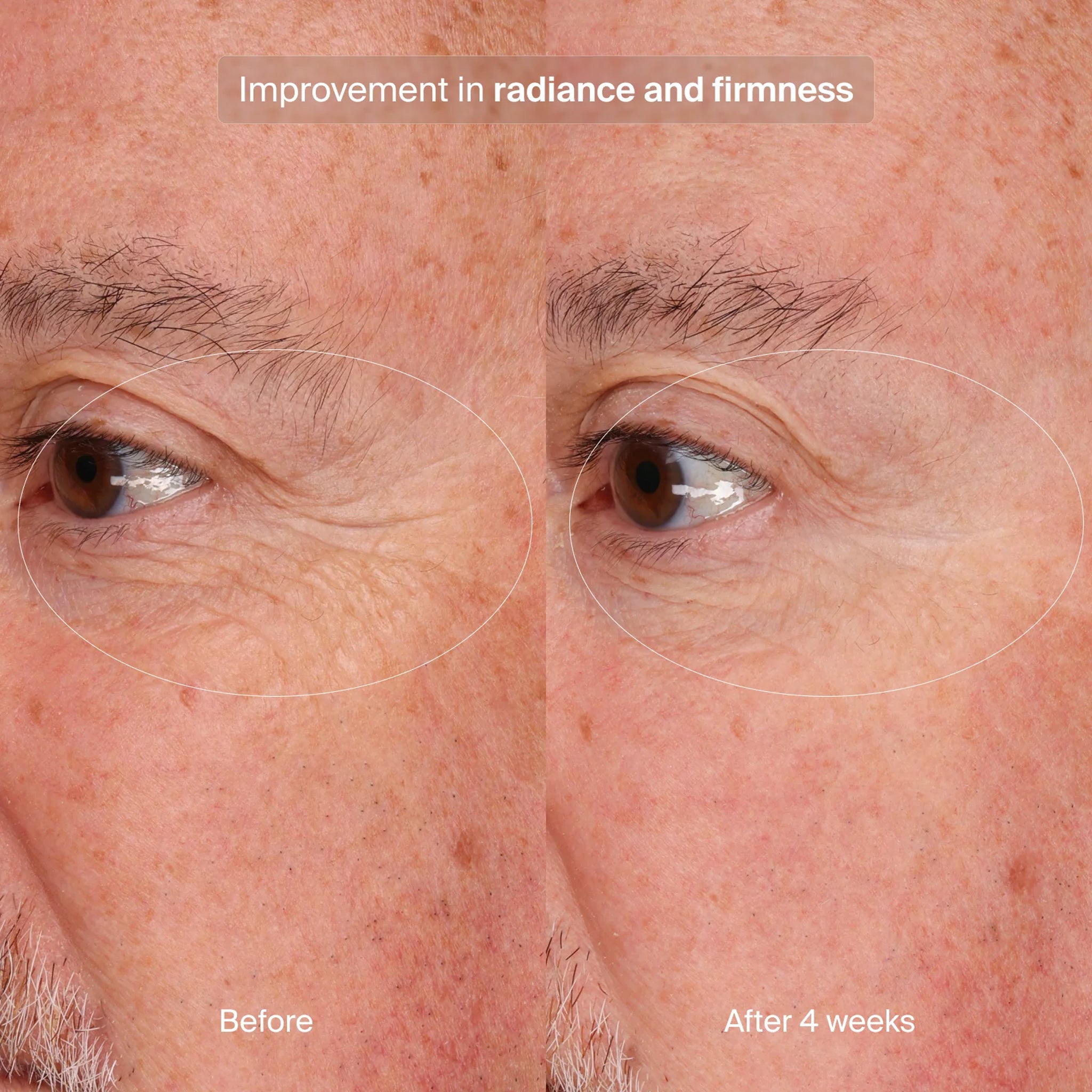 Use a grain-sized amount. Divide between both eyes, apply to under-eye area, across eyelids, and along the orbital bone up to the temples, at least once daily to lift instantly and over time.