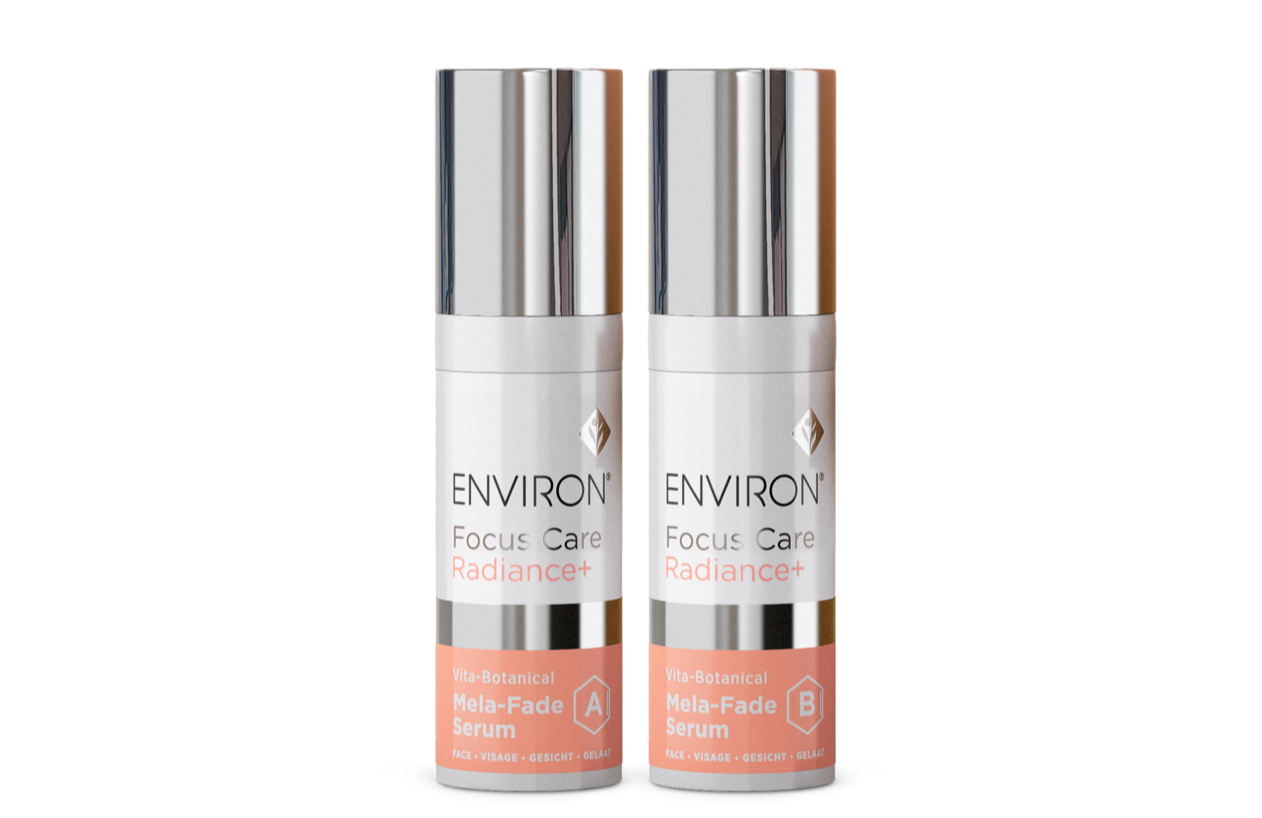 Vita-Botanical Mela-Fade Serum System A + B is Environ’s innovative Serum System which contains a concentrated blend of vitamins and botanicals to assist in targeting and improving the appearance of discolorations.